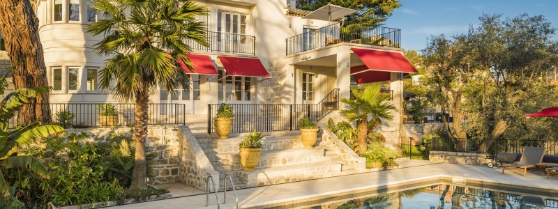Die Immobilie befindet sich auf einem abschüssigen Gelände. Der Zugang zu den verschiedenen Höhenunterschieden zwischen der Villa und dem Nebengebäude, dem Parkplatz, dem Boulevard, dem Swimmingpool, den Gärten und allen Terrassen ist stufenförmig.